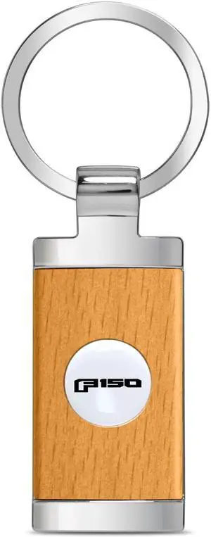 Ford F-150 2015 up Roundel Logo in White on Maple Wood Chrome Metal Trim Key Chain