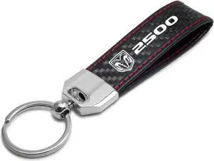 RAM 3500 Real Black Carbon Fiber Loop Strap Key Chain with Red Stitching