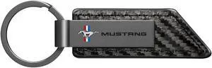 Ford Mustang Tribar Gunmetal Black Gray Metal & Carbon Fiber Texture Leather Key Chain