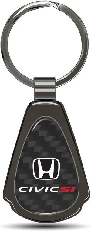 Honda Civic Si Real Black Carbon Fiber Gunmetal Black Metal Teardrop Key Chain