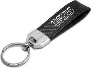 Ford Mustang 5.0 Real Carbon Fiber Leather Strap Key Chain with Black stitching