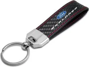 Ford Explorer Real Black Carbon Fiber Loop Strap Key Chain with Red Stitching