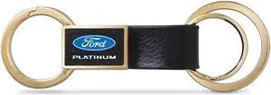 Ford Platinum Black Leather insert Golden Metal Leather Strap Key Chain