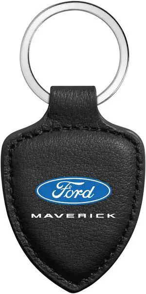 Ford Maverick Soft Real Black Leather Shield-Style Key Chain