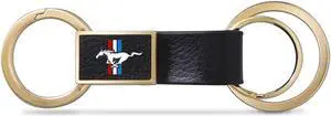 Ford Mustang Tri-Bar Black Leather insert Golden Metal Leather Strap Key Chain