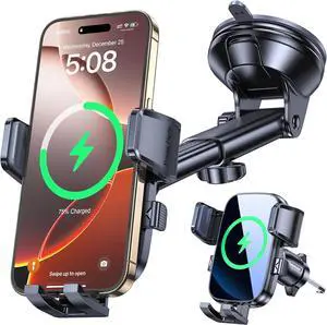 Wireless Car ChargerOne Hand Manual Clamping Fast Wireless Charger for Car Phone Holder Mount Charger Phone Holders for Your Car Dashboard/Windshield/Vent Truck Mount for iPhone