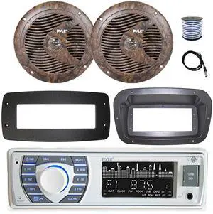 Pyle PLRMR23BTW Single DIN Bluetooth Marine MP3 Stereo Receiver, Spa bezel, Adapter Plate, 22" Radio Antenna, Wire, 2x 6.5" 180 Watt Max Power 2-Way Water Resistant Audio Speakers (Charcoal)