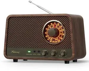 Vintage Wooden AM FM Bluetooth Radio with Plug in Wall, Retro Bluetooth Speaker Radio with Aux in | Headphone Jack | Bass Control, for Home, Office, Kitchen