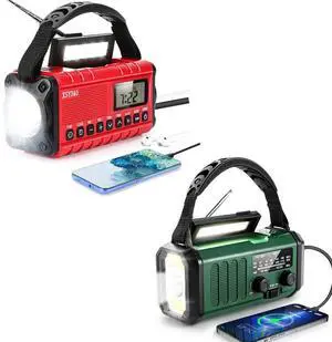 086S Hand Crank Emergency Radio - 2000mAh/7400mWh AM/FM/NOAA Solar Hand Crank Emergency Radio with 3 LED Flashlight, SOS Function for Emergencies, Camping - Red