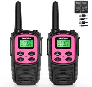 MaxTalker Walkie Talkies Long Range for Adult, MT10 Rechargeable Walkie Talkies FRS Two Way Radio, NOAA, 1200mAh Li-ion Battery USB-C Cable, LED Flashlight,VOX Walkie Talkie for Camping 2Pack (Pink)