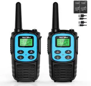 MaxTalker Walkie Talkies Long Range for Adult, MT10 Rechargeable Walkie Talkies FRS Two Way Radio, NOAA, 1200mAh Li-ion Battery USB-C Cable, LED Flashlight,VOX Walkie Talkie for Camping 2Pack (Blue)