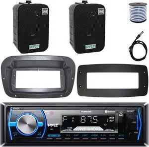 Pyle PLMRB29B Single-DIN Marine Bluetooth USB/AUX MP3 AM/FM In-Dash Stereo Black Receiver W/Install Kit + Adapter Plate, 2x 5.25" 400W Max Power Wall/Ceiling Home Dual Speakers W/Wire, 22" Antenna