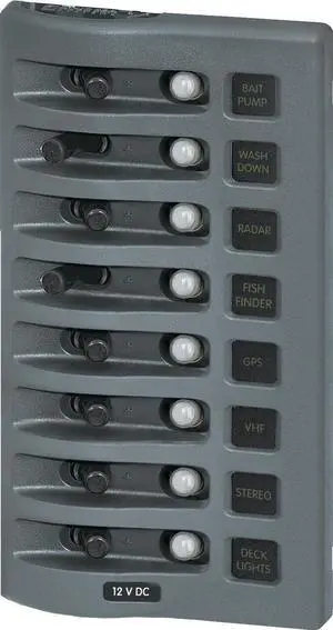 BLUE SEA 4378 WEATHER DECK 12V PANEL 8 POSITION GREY