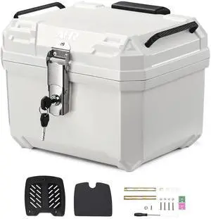 AHR 35L Motorcycle Tour Tail Box Scooter Trunk Storage Lock Carrier Case White