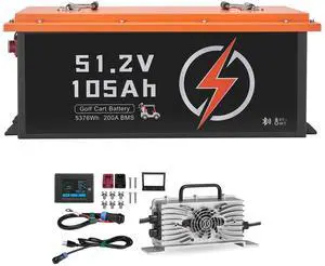 48V 105Ah Golf Cart Lithium Battery, 48 Volt Golf Cart Battery with 200A BMS, LCD Monitor and Mobile APP, LiFePO4 Battery with 600A Peak Current, 20A Charger and 4000+ Cycles, for Golf Carts