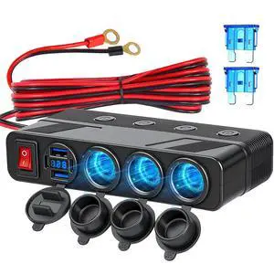 7 in 1 Cigarette Lighter Splitter, 180W Quick Charge 3.0 12V/24V 3-Socket Car Charger Adapter, 4 USB Ports Car Power Adapter Car Splitter, Independent Switches, LED Voltmeter, 2.3FT Cable