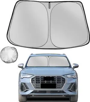 Windshield Sun Shade for 2019-2025 Audi Q3 SUV Foldable Sun Sunshade for Car Front Window Blocks UV Rays and Heat Automotive Interior Protector Custom Fit Accessories