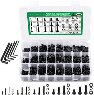 1500PCS Metric M2 M3 M4 M5 M6 Socket Head Cap Screws Nuts and Washers Assortment Kit, High Strength 12.9 Grade Carbon Steel Black Bolt Set for 3D Printer, DIY Projects and Machinery Repair