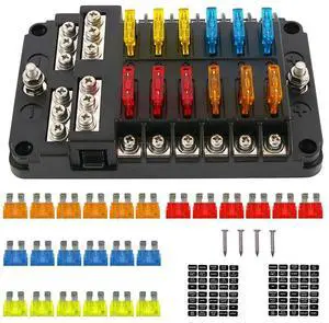 Fuse Holder, 12v Fuse Holder with LED Indicator Waterproof Cover, 12 Circuit Panel with Negative Bus for 12V/24V Car Truck Boat RV Trailer, 24 Blade Inserts