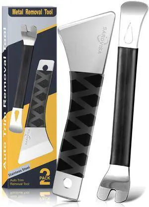 2 Packs Auto Trim Removal Tool Set, Upgraded Heavy Weight Metal Pry Tools Automotive with Stainless Steel Metal Pry Board, Car Removal Tools for Auto Door Panel, Dashboards, Clips, Baseboard