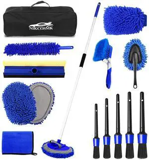 62'' Car Wash Brush Kit Mitt Mop Sponge with Long Handle, 1 Chenille Scratch-Free Replacement Head, Windshield Window Squeegee,Car Duster,Car Detailing Brushes,Tower,Car Cleaning Kit for Cars RV Truck