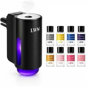 LWW Smart Car Air Freshener - 3 Levels Strength with Ventilation Clip, Rechargeable Car Fragrance Atomizer - with 8 10ml Bottles of Fragrance, Long Lasting Oil Diffuser (Black)