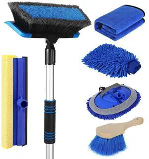 52" Car Wash Brush with Long Handle | Built-in Rubber Squeegee & Rubber Bumper | Lightweight extendable Handle | Soft Bristle Brush for Car, RV, Boat, Solar Panel, Deck Washing- Brand: Metra