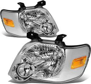 DNA Motoring HL-OH-F1504-CH-CL1 For 2004 to 2008 Ford F150 11th Gen Chrome Housing Clear Corner Headlight Headlamp 05 06 07 Left + Right