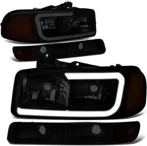 DNA Motoring HL-OH-CS03-4P-SM-AM For 2003 to 2006 Chevy Silverado Avalanche 4Pcs Headlight+Bumper Lamp Smoked Housing Amber Corner 1 Gen 04 05 Left + Right