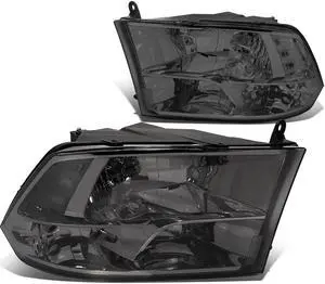DNA Motoring HL-OH-DR09QUA-SM-CL1 For 2009 to 2018 Dodge Ram Truck 1500 2500 3500 Pair Headlight Smoked Housing Clear Corner Headamp - 4th Gen 10 11 12 13 14 15 16