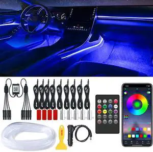 Acrylic Interior Car LED Strip Light with Wireless APP, RGB 18 in 1 with 175 inches 593 LEDs Fiber Optic Strip Lights for Car, Dynamic Chasing Music Sync Neon Car Ambient Lighting Kits
