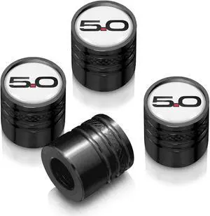 Ford Mustang 5.0 in White on Black Aluminum Cylinder-Style Tire Valve Stem Caps