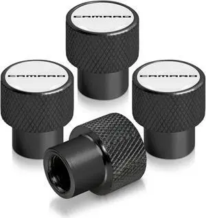 Chevrolet Camaro Logo in Black on Black Aluminum Tire Valve Stem Caps