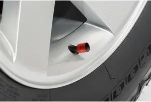 Ford F-150 2015 up in White on Red Aluminum Cylinder-Style Tire Valve Stem Caps