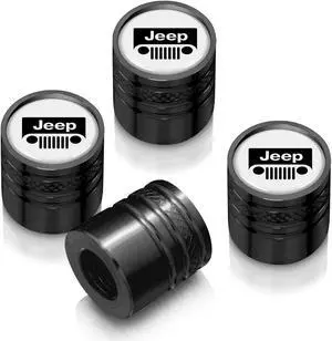 Jeep Grill in White on Black Aluminum Cylinder-Style Tire Valve Stem Caps