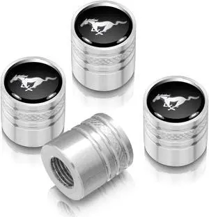 Ford Mustang Black on Silver Aluminum Cylinder-Style Tire Valve Stem Caps