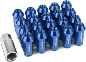 DNA Motoring LG-T777-125-BL 20-Piece M12 x 1.25 Aluminum Alloy Wheel Lug Nuts + Deep Drive Extension (Blue)