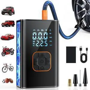 150 PSI Tire inflator portable air compressor with LCD Display Emergency LED Light Rechargeable Li-ion Batteryd Electric Cordless Air Pump for Cars, Motorbikes, Balls, Swim rings and All Bicycles