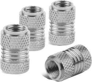DNA Motoring VCAP-ZTL-9009-SL 17mm Knurled Style Anodized Aluminum Silver Tire Valve Stem Caps (Pack of 4)