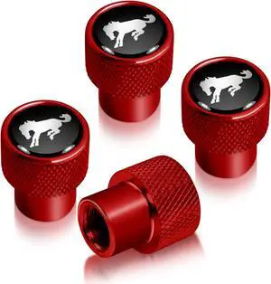 Ford Bronco Logo in Black on Red Aluminum Tire Valve Stem Caps