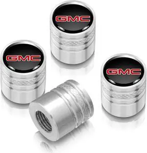 GMC Red Logo in White on Shining Silver Aluminum Tire Valve Stem Caps
