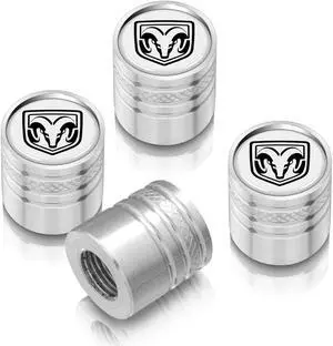 RAM 2019 Logo White on Silver Aluminum Cylinder-Style Tire Valve Stem Caps