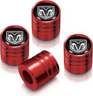 RAM Logo in Black on Red Aluminum Tire Valve Stem Caps