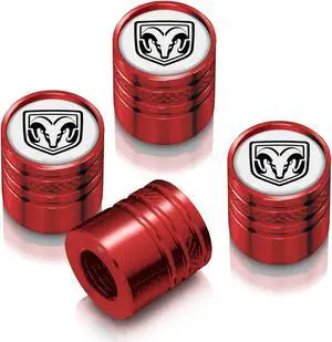 RAM Logo in White on Red Aluminum Tire Valve Stem Caps