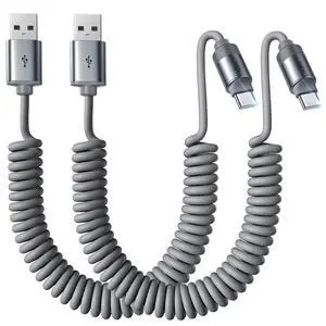 LISEN Coiled USB C Cable, 2 Pack for Android Auto & CarPlay Cable, Short USB A to USB C Cable Compatible with iPhone 17/16/15, Samsung Galaxy S25/S24/S23 A15/A14, Google Pixel 9/8, Space Gray 6FT