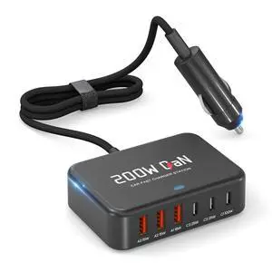 • Features: 3 USB Ports --one 30W PD 3.0 USB-C Port, two Smart 18W Qucik Charge 3.0 Outlets;, Perfect for iPhone 12;, Blue LED & Touch Switch;, Made of advanced aluminum alloy material;