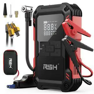Portable Car Jump Starter with Air Compressor, 150PSI 8000A Jump Starter (All Gas/10.0L Diesel), 12V Battery Jump Box Car Battery Jumper Starter with 3.4" LCD Display, 2 Lights