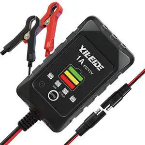6V/12V 1A Lithium Battery Charger, 1A Smart battery Chargers Automatic Trickle Battery chargers Battery Maintainer for Motorcycle, Car, ATVs, Lawn Mower, Lead Acid Batteries & Lithium Batteries