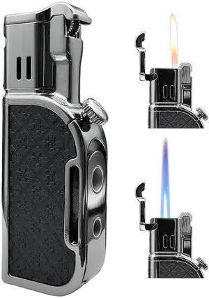 Butane Torch Lighter,Soft/Jet Dual Switchable Windproof Adjustable Flame,Refillable Grinding Wheel Cool Lighter with Punch,Mens Gift(Butane Not Included)