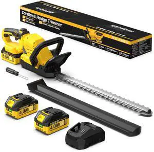 21" Cordless Hedge Trimmer - 21V Portable Electric Bush Trimmer with 2 x 4.0Ah Batteries & Charger & 180° Rotatable Handle & Dual-Action Blade 3/5" Cutting Width for Garden Yard Maintenance